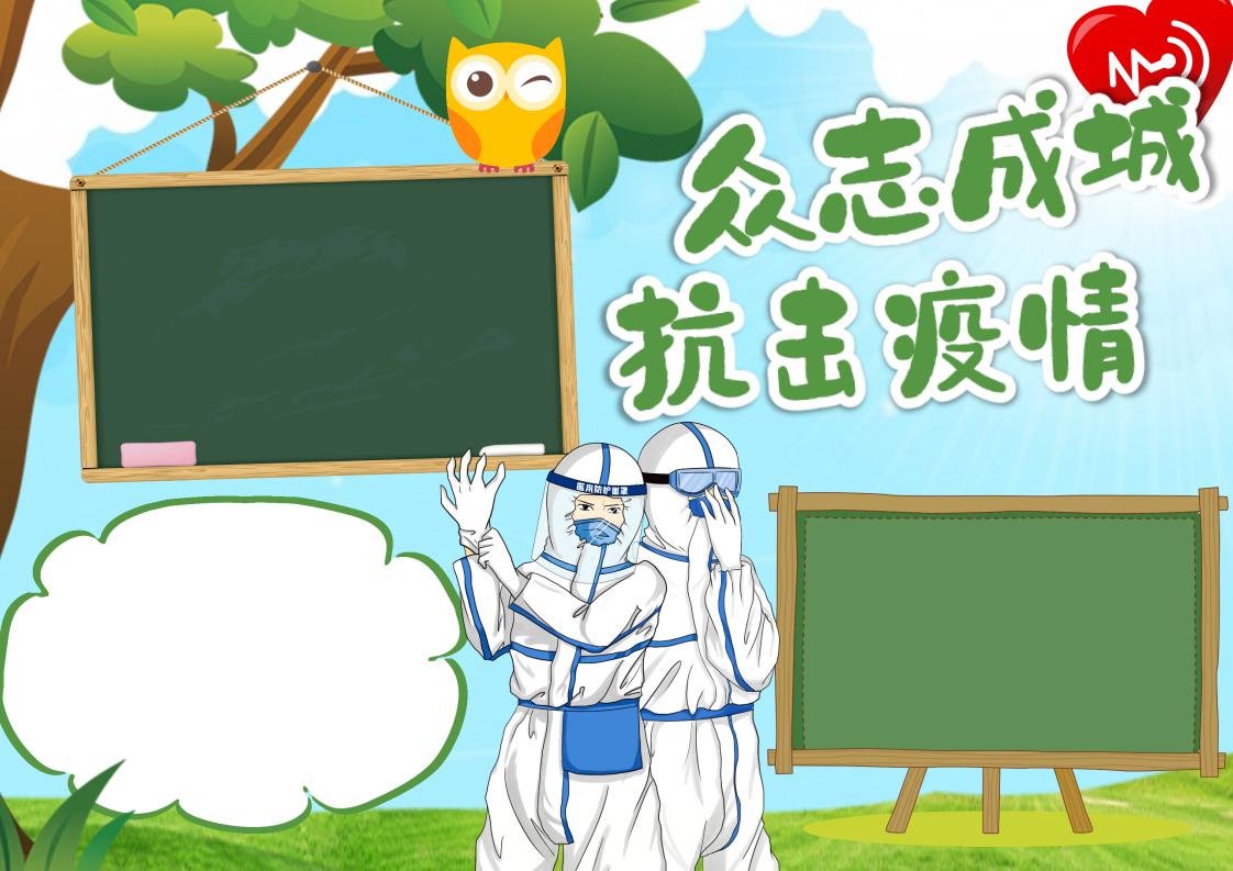 word模板-绿色卡通抗击疫情小报模板