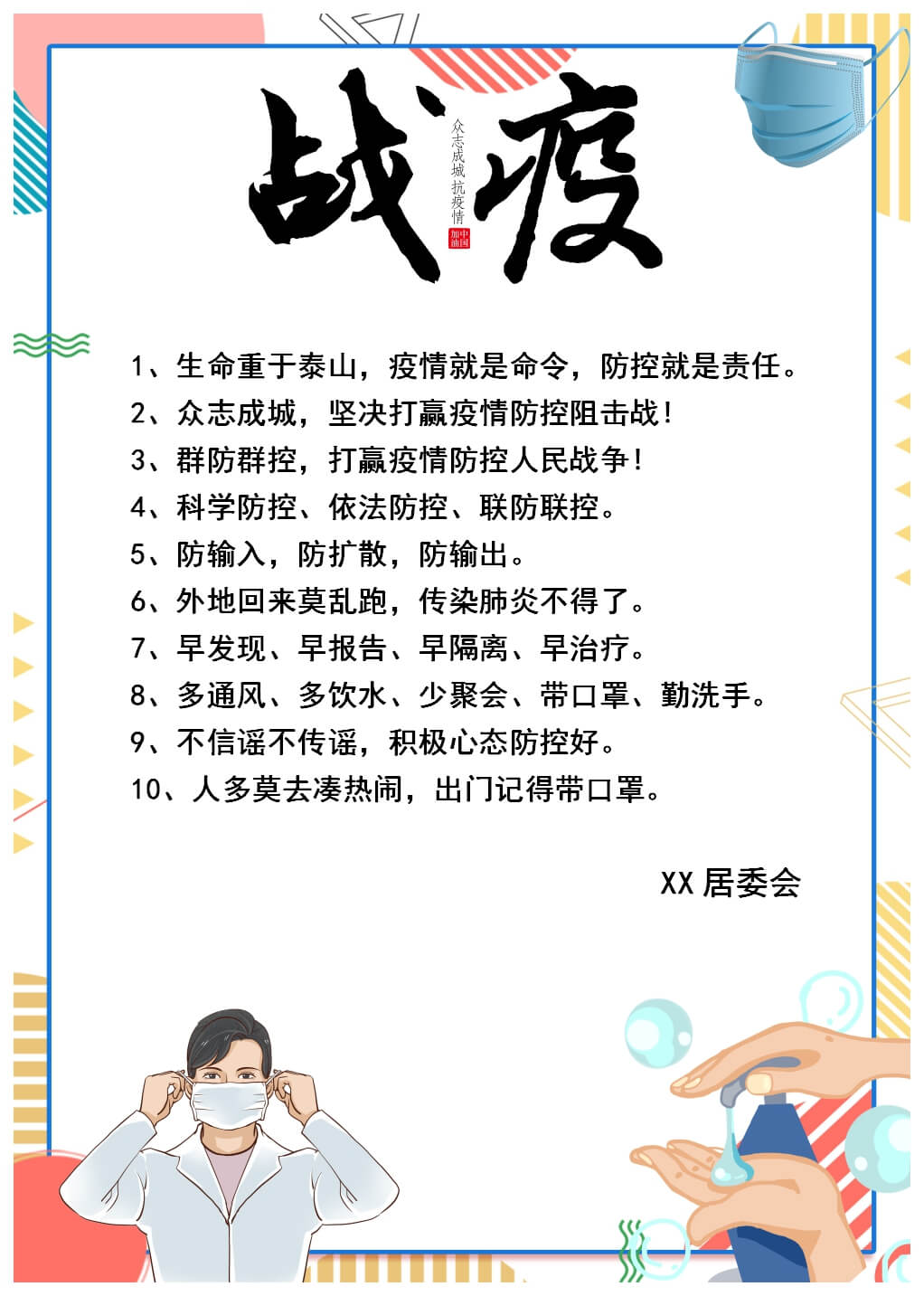 word模板-预防新型冠状病毒公告宣传海报