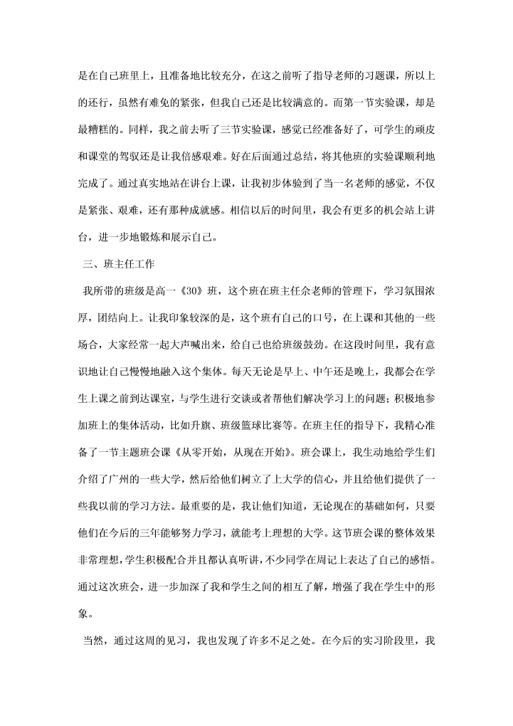 word模板-化学教师见习总结