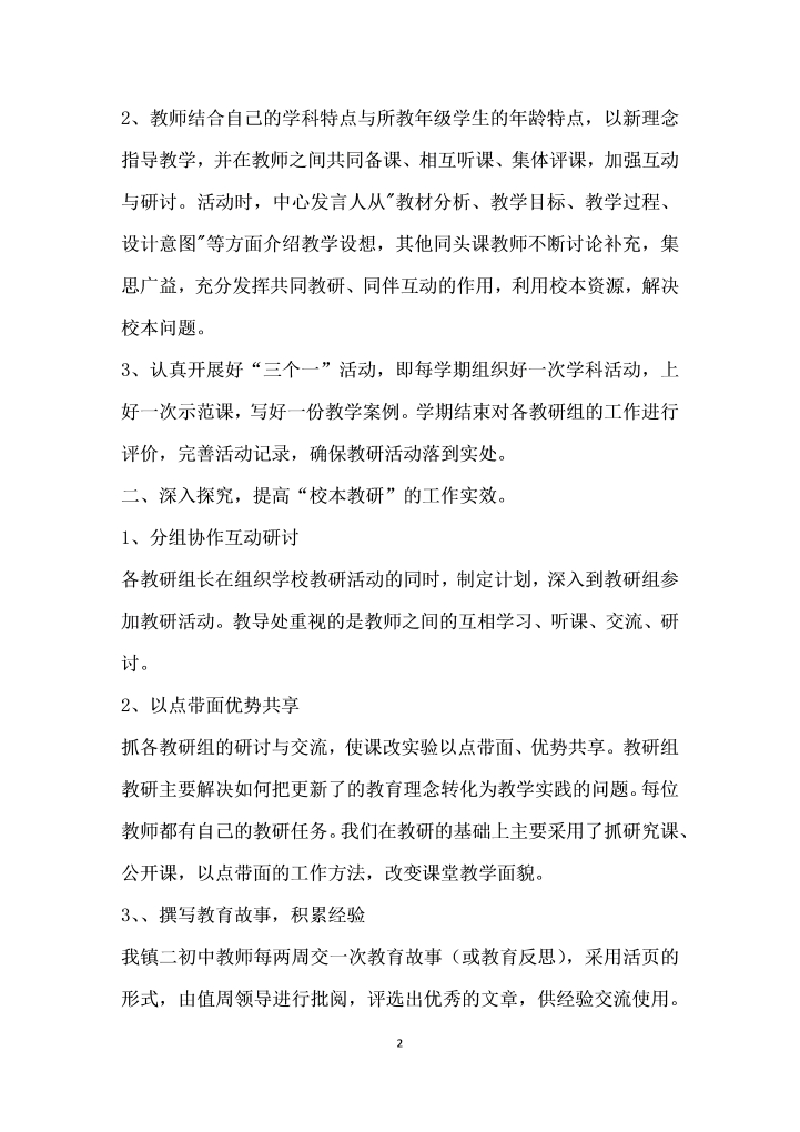 word模板-初中校本教研情况汇报