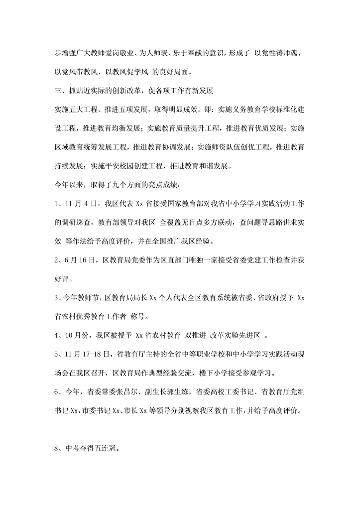 word模板-教育局党委党建工作汇报