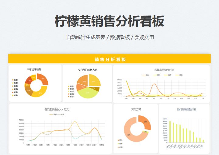 excel模板-柠檬黄销售分析看板