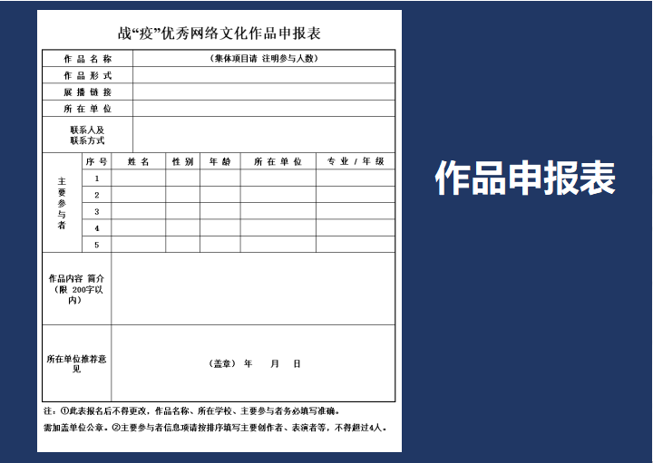 excel模板-战“疫”优秀网络文化作品申报表